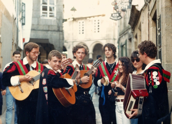 А кроме профессиональных играющих и поющих музыкантов всех жанров и танцоров Сантьяго и другие галисийские города и посёлки превращаются в открытые сцены для исполнителей-любителей. И одни из них студенты-«тунцы», которые есть не только в каждом университетском городе, но и чуть ли не на каждом факультете любого университета. И «концертируют» эти «тунцы» круглый год.