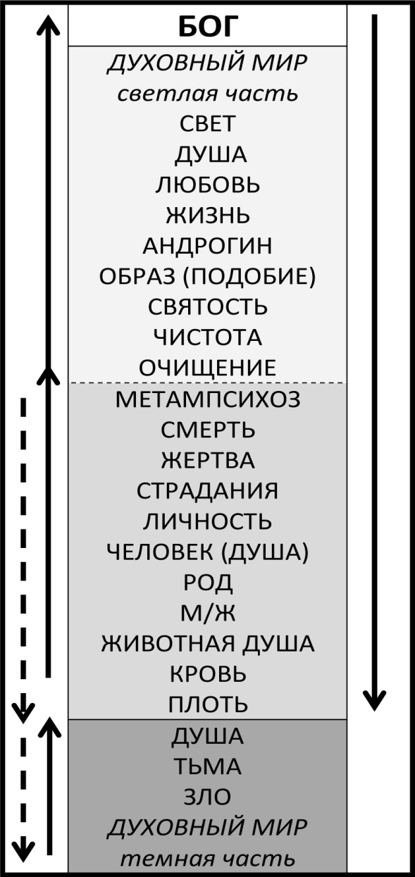 Невозможно объяснить появление света без Бога, жизни – без света, как света без любви и любви без света. Именно любовь является источником жизни, жизнь – для появления человека, а для его плоти и сам человек. Человеческая плоть не может существовать без крови, которая питает ее полезными элементами, несет в себе ДНК, дает пользоваться как мужской, так и женской энергией в ней, имеет информацию о создании человека, и данные о его Роде. В свою очередь, энергии крови нужны для создания и питания в ней животной души. Вечная Душа, посылаемая Богом, имея совесть, харизму и дух, превращает затем временную душу в Личность, стараясь избавить ее от своей животной природы, оставляя ее двуполой, возлагает на нее роль посредницы для общения с однополой плотью. Ведь и вечная Душа, создана двуполой не из-за Личности, или крови и плоти, а благодаря своему Образу, полученному от Бога, позволяющему нашим душам любить, и содержать любовь, а плотью мы лишь размножаемся,