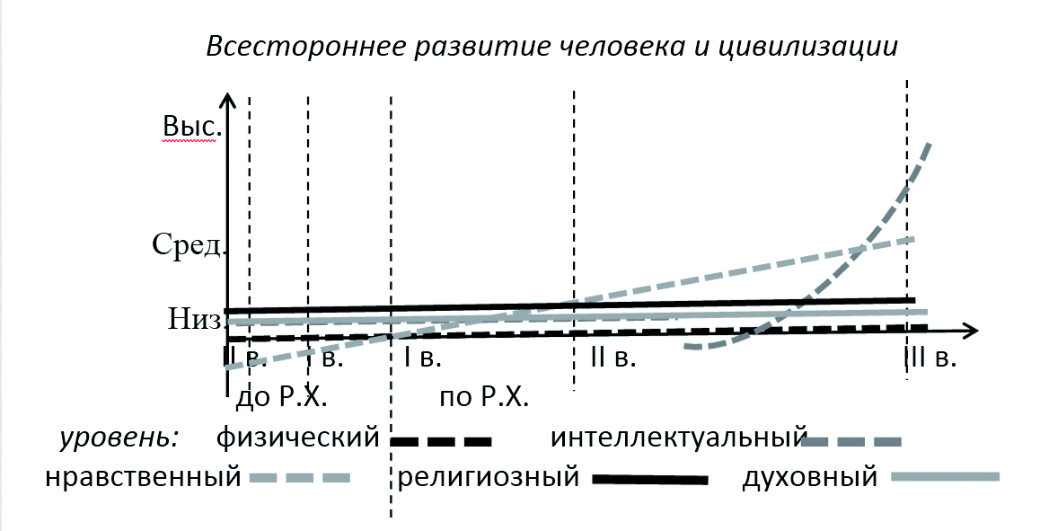 Если внимательней присмотреться к развитию человека, как и всей цивилизации на протяжении последних 4-х веков, изучив выводы археологии и древние исторические документы, можно заметить в них отсутствие прогресса в физическом, религиозном и духовном развитии человека, кроме интеллекта и нравственности. Этот перекос и дисбаланс еще раз говорит о более сложном устройстве и развитии человека, чем это принято считать.
