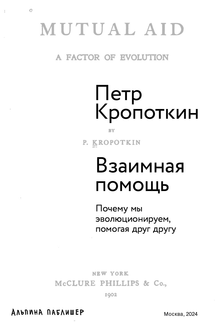 Ждать пришлось долго – но Кропоткин, в отличие от многих других революционеров-народников первой волны, сгинувших на чужбине от пьянства, безденежья и безнадеги, политических сдвигов в России все-таки дождался. Они-то и проложили путь на родину произведениям мятежного князя. После революции 1905 г. и последовавшей за ней отмены цензуры русский перевод «Взаимопомощи», доработанный и отредактированный автором, вышел под названием «Взаимная помощь как фактор эволюции». Это произошло в 1907 г., тогда же были впервые изданы в России и мемуары Кропоткина – знаменитые «Записки революционера». А вслед за Февральской революцией 75-летний Кропоткин после 40 лет эмиграции пожаловал на родину уже собственной персоной. Поселившись в Дмитрове, этот «старый, заслуженный революционер», как его называл Ленин, выписавший Кропоткину охранную грамоту, начал готовить корпус своих сочинений к переизданию на русском языке. Результатом этой работы стала «Этика», явившаяся продолжением и развитием идей, высказанных во «Взаимопомощи», – она была издана в 1922 г., на следующий год после смерти Кропоткина. В том же году вышло и очередное русское издание «Взаимопомощи». В новой авторской редакции книга получила название «Взаимная помощь среди животных и людей как двигатель прогресса» – переиздание этого текста вы сейчас и держите в руках.