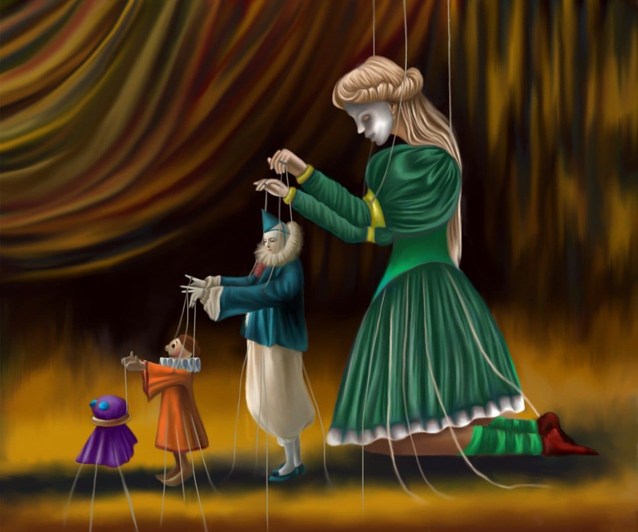 Но марионетка, осознавшая свою подчинённость и почувствовавшая нити, на которых она болтается, получает, как ни странно, определённую степень свободы и выбора.
