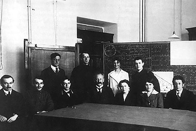 Семинар А. Ф. Иоффе в Политехническом институте, 1915 год. Сидят (слева направо): Я. И. Френкель, Н. Н. Семёнов, А. П. Ющенко, А. Ф. Иоффе, Я. Р. Шмидт, И. К. Бобр, К. Ф. Неструх. Стоят: П. Л. Капица, П. И. Лукирский, М. В. Миловидова-Кирпичёва, Я. Г. Дорфман