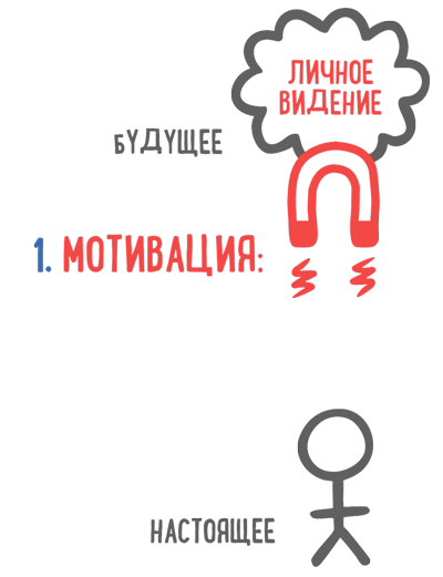 Первый раздел объясняет, как работает мотивация, а также в нем описана совокупность методов, помогающих создать так называемое личное видение. Оно является инструментом для запуска и долговременного удержания нашей внутренней мотивации.