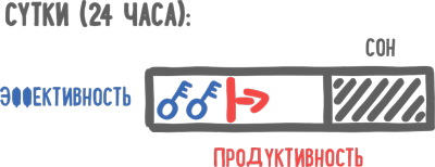 Две основные составляющие самодисциплины – продуктивность и эффективность. В сутках только 24 часа. Если вычесть время, отведенное на сон, останется продуктивное время.