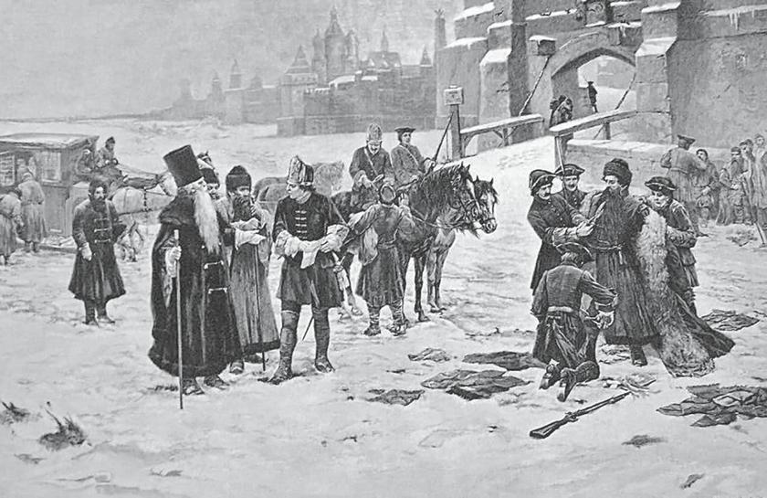 Жители европейской столицы, за исключением крестьян и духовенства, были обязаны носить немецкое платье. «Одеваются они почти как лифляндцы, и носят такую же лыковую обувь, плоские шапки и за поясом небольшой топор, но переселившиеся в города ходят в немецком платье», – пишет автор «Описания». В 1700 году Пётр начал с того, что предписал мужчинам «на Москве и в городах» носить платье «на манер венгерского». Впоследствии платье стало немецким и носить его должны были не только мужчины, но и женщины. И попробуй кто нарядиться вопреки царскому желанию… «Нами замечено, что на Невском проспекте и в ассамблеях недоросли отцов именитых как-то: князей, графов и баронов, в нарушение этикету и регламенту штиля в гишпанских камзолах и панталонах щеголяют предерзко. Господину Полицмейстеру Санкт-Петербурга указано: иных щеголей с отменным рвением великим вылавливать, свозить в Литейную часть и бить батогами, пока от гишпанских панталон и камзолов зело похабный вид не останется. На звание и именитость отцов не взирать, а также не обращать никакого внимания на вопли наказуемых». Батоги – это палки или прутья толщиной примерно в палец взрослого мужчины. Представьте, что ими бьют до тех пор, пока одежда не разорвется в клочья… Преследование стиляг в пятидесятые годы прошлого века не идет ни в какое сравнение с петровскими мерами – тем могли разорвать одежду или порезать её ножницами, не более того.