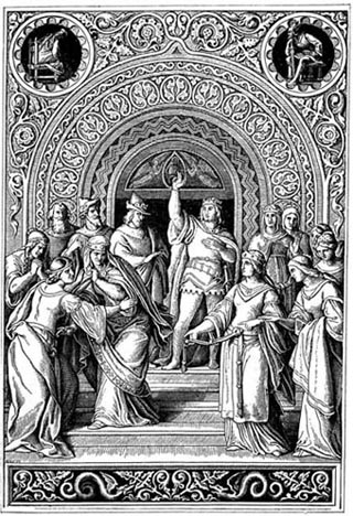 Затем минуло нисколько лет, в течение которых Сигфрид мирно и счастливо жил со своею супругою и успел почти позабыть об услугах, оказанных им Гунтеру. Но гордая и заносчивая Брунгильда, которая почитала Сигфрида вассалом своего мужа Гунтера, нисколько раз справлялась у него, почему Сигфрид не является к нему на поклон, как другие, а живет в своей земле, как полновластный владыка её, и не присылает Гунтеру ни даров, ни дани? Гунтер каждый раз отвечал жене уклончиво, опасаясь того, что она может угадать его настоящие отношения к Сигфриду и, конечно, не смея пояснить, что он сам гораздо более обязан оказывать почтения Сигфриду, чем Сигфрид – ему. Но Брунгильда не давала ему покоя, продолжая его упрекать в слабости и слишком снисходительном отношении к вассалам, и вот, наконец, Гунтер решился пригласить Сигфрида к ceбе в гости, не сказав о том ни слова жене своей, которая должна была подумать, что Сигфрид, по собственному побуждению, явился отдать долг почтения своему господину, королю Бургундскому.