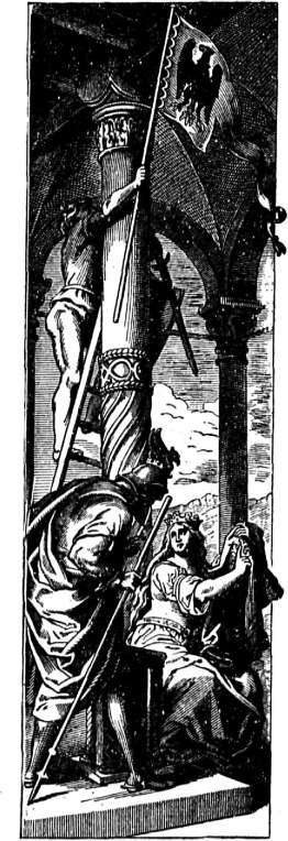 Между тем, безсовестные Сигфридовы убийцы, Гунтер п Хаген, пользуясь угнетенным и нравственно-подавленным состоянием несчастной женщины, потребовали у неё ключей от Сигфридовой казны – и она беспрекословно отдала им эти ключи. Тогда они завладели всем кладом Нибелунгов, оставив Кримгильде лишь самую ничтожную часть сокровищ, составлявших этот древний и богатейший клад. Мало того, желая обеспечить себя и на будущее время от всяких притязаний со стороны Кримгильды, они предложили ей с ними помириться… Она и на это изъявила согласие; но в сердце затаилось у неё иное чувство!.. -