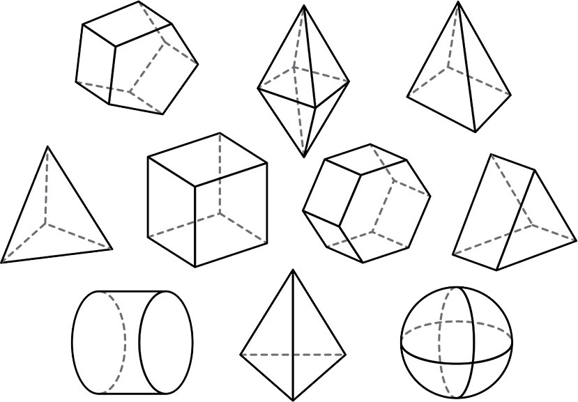 паралеллелограмм (частные случаи: квадрат, прямоугольник, ромб), трапеция, окружность, треугольник, многоугольник, полуокружность, звезда, полумесяц.
