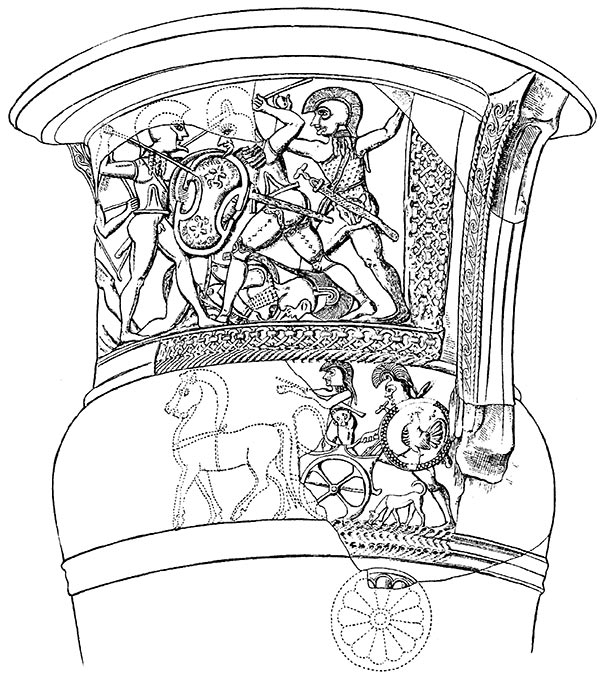 Сцены из Троянской войны. Рельеф на бронзовом архаическом сосуде. VII в. до н. э.