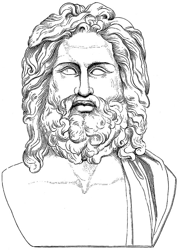 Рек – и в знаменье черными Зевс помогает бровями.Быстро власы благовонные вверх поднялись у КронидаОкрест бессмертной главы, – и потрясся Олимп многохолмный.Он изображается с молнией в руках, с орлом у ног. Лицо выражает величие мысли и державное спокойствие. К нему обращались с молитвой, пели: