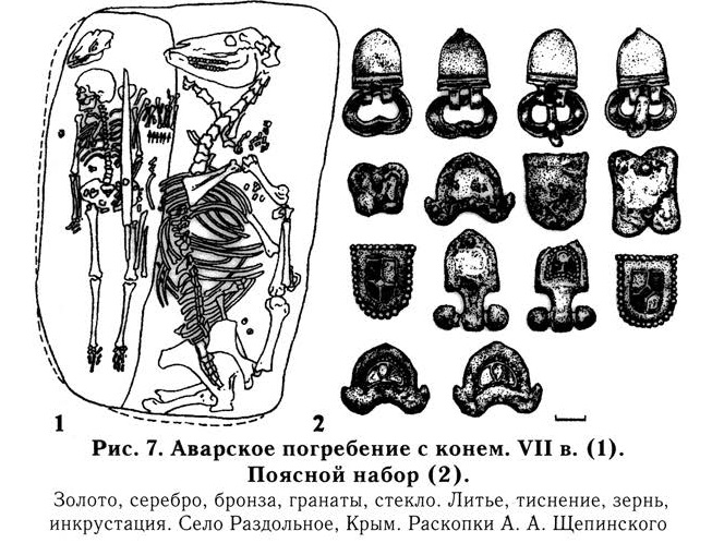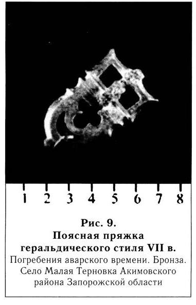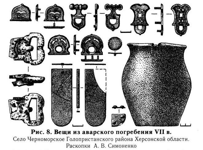К сожалению, археологических следов прохождения аваров через восточнославянские земли сохранилось немного. Разве только в городище Зимно (неподалеку от Владимира-Волынского) содержатся в археологическом комплексе отдельные аварские вещи. Можно с уверенностью утверждать, что славяне позаимствовали от аваров организацию конного войска и элементы снаряжения всадника. Особое распространение в славянской среде VIII в, как и по всей Европе, получили аварские стремена. То же самое, вероятно, можно сказать и о металлических украшениях поясов, которые имели широкое употребление как среди аварских мужчин, так и среди женщин.