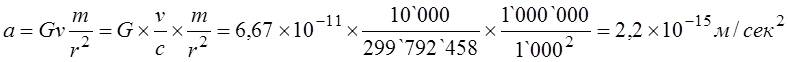Принятые нами значения позволяют вычислить гравитационное самоускорение зонда: