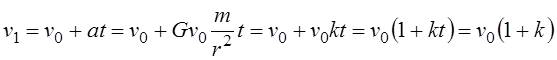 Это ускорение вызывает увеличение скорости космолёта. Для простоты произведём анализ этой скорости следующим образом. Пусть начальная скорость космолёта увеличивается каждую секунду на некоторую величину и составляет:
