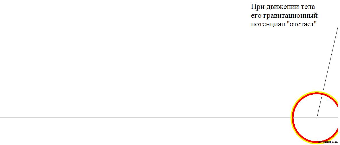 Рис.3 При плавном движении Солнца его гравитационный потенциал «вытягивается» в пространстве, отстаёт от своего источника.