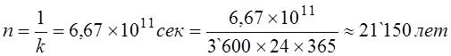 Видим, что для удвоения скорости космолёта необходимо время, численно равное n = 1/k. И здесь мы видим, что малость величины k требует очень длительного времени на разгон. Например, для принятых выше значений параметров космолета величина k равна: