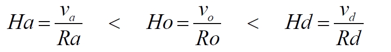 Как видим, взаимное положение графиков, диаграмм Хаббла сохранилось, но теперь ни один из них не является прямой линией, как на рис.11.1 и как на стандартной диаграмме. При этом замечаем, что графически при некоторой произвольной скорости сверхновой параметр Хаббла H0 для красного графика больше, чем для зелёного Ha, и меньше, чем для синего Hd. Говоря иначе, график с H0 на рисунке расположен ниже графика с Ha и выше графика Hd: