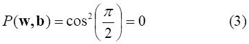 Уравнение показывает, что вероятность Р(w,b) получения вторым шаром белого (w) или чёрного (b) цвета равна произведению двух независимых событий: с вероятностью 1/2 (получение первым шаром чёрного цвета) и с вероятностью cos2(φ) того, что второй шар получит противоположный цвет. Рассмотрим крайние значения этого уравнения φ =0 и φ =π/2.