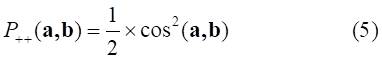 В этом уравнении параметры (a,b) имеют конкретное физическое значение. Это угол между осями измерительных поляризаторов. И что интересно, в противоположность рассмотренному нами эксперименту с шарами, в квантовой механике события, описываемые законом Малуса, считаются независимым. Соответственно, при вычислении вероятности наступления совместных событий используется не классическая теория вероятности, а так называемая квантовая теория вероятности:
