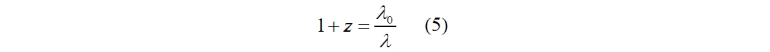 Все величины, помеченные индексом 0, относятся к моменту приёма волны . Так как в расширяющейся Вселенной , то и длина волны принимаемого сигнала больше, чем излучённого. Величина , называемая параметром красного смещения, равна относительному увеличению длины волны принимаемого электромагнитного сигнала" [4].