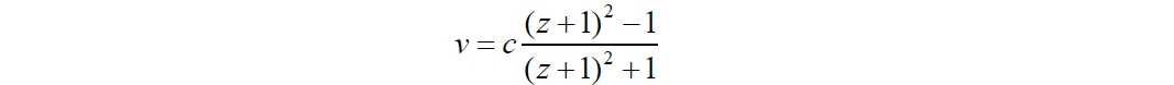 Строго говоря, это уравнение для красного смещения не должно иметь решений, поскольку при любой скорости величина смещения z оказывается отрицательной величиной: