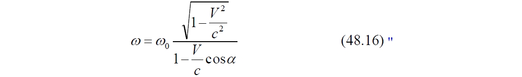 "… α – угол … между направлением испускания волны и направлением движения – источника, и выражая ω через ω0, получим: