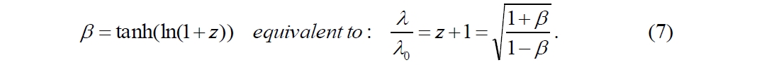 Из этого уравнения (4) можно вывести соотношение между скоростью и красным смещением. В цитате мы добавили номера к формулам (0), (1) и (4), которые в оригинале отсутствуют. Если взять левое равенство уравнения (1) из приведённой цитаты: