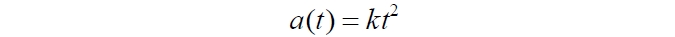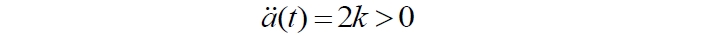 Видим, что это уравнение описывает параболу с ветвями, направленными вверх. С ростом времени до бесконечности, так же до бесконечности возрастает и масштабный фактор. Автор этого примера задаёт весьма коварный вопрос: описывает ли это уравнение Вселенную, расширяющуюся ускоренно?