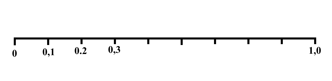 Еще раз отметим, что отличная от единицы цифра в первой позиции после нуля первого числа будет нулем. Следовательно, в "искомом" числе после запятой первой будет 2. То есть, число будет 0,2. Сразу же на рисунке находим, что эта точка на отрезке есть – это точка 0,2.