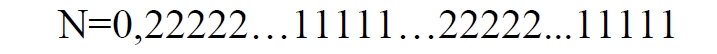 Но мы уже можем заметить, что такое число не получается. А получится число 0,22222…, в котором цифра 1 появится очень и очень не скоро. И эта цифра, единица также будет тиражироваться многократно. В конечном счете, формируемое число примет вид: