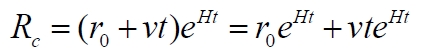 Вариант 1. От начальной дистанции r0 за время t = 1 сначала прошёл свой путь авто. И только после этого за следующий интервал времени t = 1 этот путь экспоненциально удлинился: