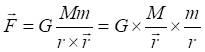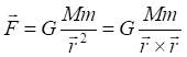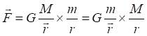 При этом нередко уточняется, что знак минус означает притяжение. Логически это легко объяснимо. Если масса находится в начале координат, то все положительные векторы направлены "наружу", от этого начала. Но сила притяжения направлена извне в сторону тела, в сторону начала координат. То есть, её можно рассматривать как отрицательный скаляр, так и как вектор, направленный в сторону начала координат. Но если эта величина, сила является вектором по указанной выше минусовой причине, записать это можно в следующей векторной форме