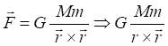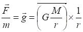 Теперь можно заметить, почему мы не использовали в качестве вектора обратную величину квадрата расстояния. Бесспорно, что вектором в выражении (3) может быть только величина в скобках, левый сомножитель, поскольку масса определённо величина не векторная. Это выражение является одной из записей закона Ньютона – сила равна произведению массы на ускорение. То есть, в этом выражении (3) векторная величина в скобках является ускорением. В нашем случае это вполне определённое ускорение – ускорение свободного падения на тело (планету) массой M.