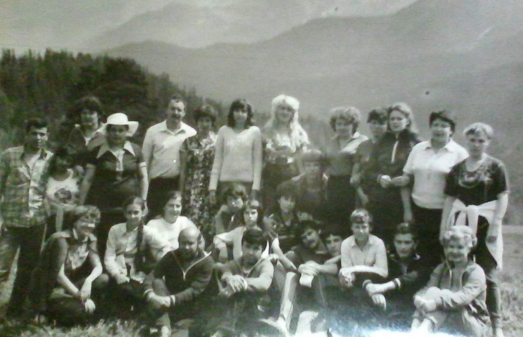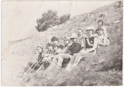 Группа сфотографировалась у большого валуна и на склоне перевала.