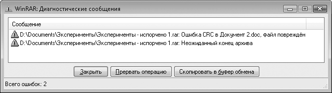 Рис. 1.6. Диагностические сообщения программы WinRAR