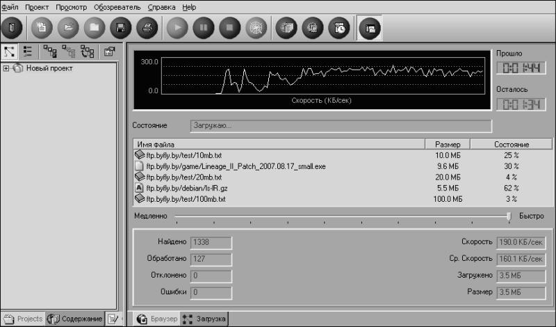 Рис. 2.59. Процесс загрузки FTP-сайта с помощью WebCopier