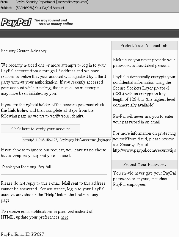 Рис. 3.1. Образец почтового фишинга популярной платежной системы