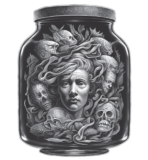 Лёва копает, копает, и вдруг из ямы дедушкина голова вылетает. Вылетела, на платье села и закружилась. Глазик у дедушкиной головы один вытек, а из другого червячок вылезает.