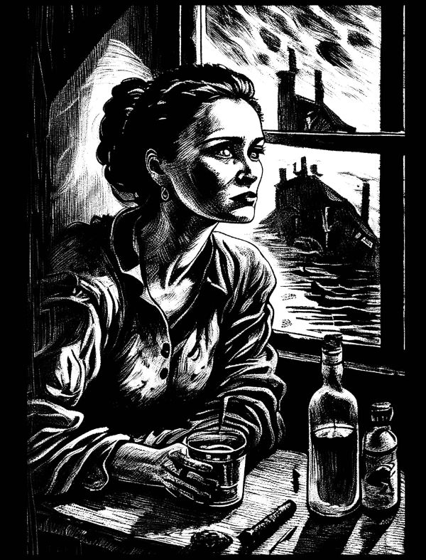 Просыпается он в терраске. Ночь на дворе. За окном ливень. А чёрное платье висит на вешалке.