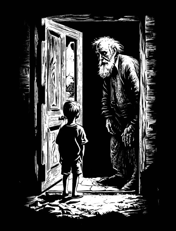 Испугался Паша, боится идти. Одеялом накрылся, лежит, дрожит. Но рука всё манит и манит, и на кровать к Паше ползёт.