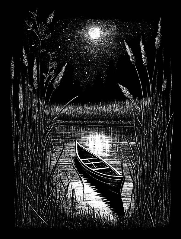 А у берега чья-то лодка стоит. Сели они в лодку. Борька махнул вёслами раз, махнул другой и затормозил. Прямо в камыши заехали!