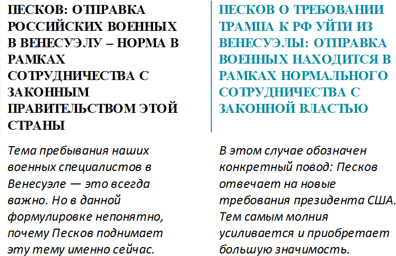Лучше всего давать молнии в форме простых тезисов, но иногда нельзя обойтись без более сложных конструкций. Бывает, например, что высказывание ньюсмейкера звучит слишком неконкретно и не несет особой смысловой нагрузки без упоминания конкретного информационного повода.