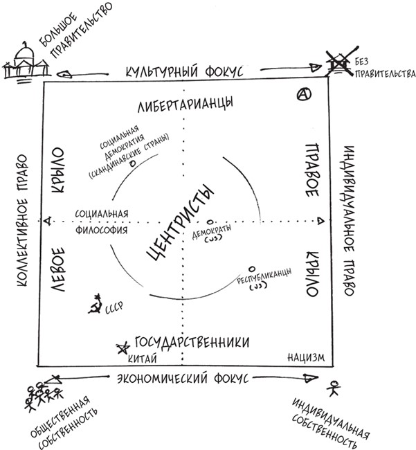 Рассмотрим то политическое разнообразие, которое мы наблюдали в XX веке. В то время как в Соединенных Штатах Демократическую партию часто считают чем-то средним между центристами и радикальными левыми, реальность такова, что с глобальной исторической точки зрения они скорее правоцентристы, чем коммунисты. Такие вещи, как всеобщее здравоохранение, бесплатное образование и сильное социальное обеспечение, исторически не делают правительства крайне левыми; на самом деле многие демократические государства, предоставляющие эти базовые услуги, сегодня были бы справа от центра.