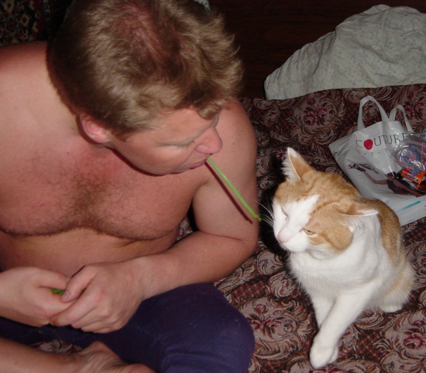 Вот и задружил Паша с этой Юлей не на шутку. До свадьбы, конечно, пока не дошло, но через неделю кафешно-киношного периода дамочка уже стала оставаться ночевать в Пашкиной съёмной холостяцкой берлоге. И всё бы хорошо, да уж больно её кот Кеша пугал. Ходил за Юлей по пятам, не отставая ни на шаг. Словно контролировал. Даже в туалет пытался прорваться. А когда парочка забиралась в кровать, тут же норовил пристроиться рядом. Да не скромненько с краешку, а непременно старался втиснуться между голубками. Юлю такое поведение нахального кота очень напрягало.