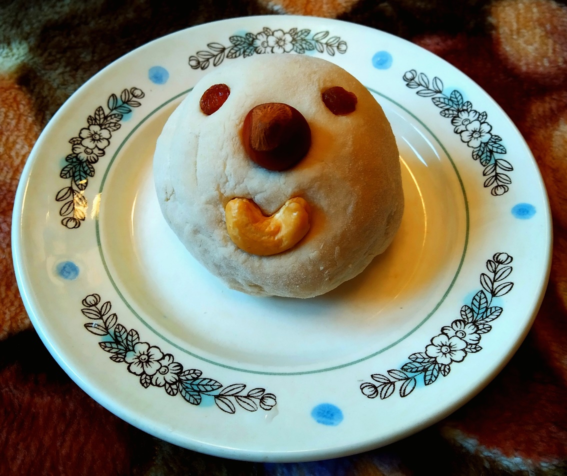 Слепила колобок и в широкой миске поближе к батарее поставила: