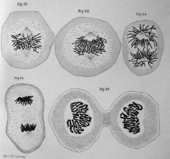 Various stages of cell division or mitosis as recorded by Walther Flemming in his 1882 book Zellsubstanz, Kern und Zelltheilung (Cell Substance, Nucleus and Cell Division).