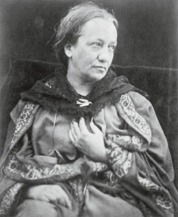 Cameron was born in Calcutta in 1815. Her family name, Pattle – close to the Hindu ‘Patel’ – indicates an Asian ancestry, evident in her broad forehead and ‘Pondicherry eyes’, the same features seen in her great-nieces, Vanessa Bell and Virginia Woolf. Theirs was a family which looked east. Julia’s husband Charles, twenty years her senior, had fallen in love with Ceylon as a young man, and continually returned there. Their house in Freshwater was named after the family’s coffee plantation, while the subcontinent’s influence was reflected in its Indian gothic arches.