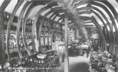 ‘The Common Porpoise,’ Mr Adams reassures me, ‘occasionally passes along our southern shore in small shoals.’ But even bigger cetaceans have been found here. In 1758, a Royal Navy ship captured a sixty-six-foot fin whale which had been seen floating dead in the water, only to leave go of it off the Needles, from where it washed up at what would become known as Whale Chine. It took a century for another fin whale to appear at the feet of Tennyson Down, in 1842; it ended up in the amusement park at nearby Blackgang Chine, where its enclosed bones became a kind of cavernous shopping-bazaar-cum-boatshed, lined with plates, baskets, pictures, shells and glass lighthouses filled with coloured sand from Alum Bay, while its empty jaws pointed forlornly to the window and the sea beyond. It was still there when I visited the island as a boy, although I remember being more excited by the plaster gnomes and toadstools outside.