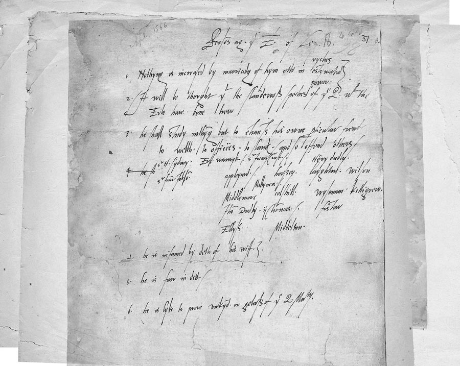 FRONTISPIECE: Cecil’s note of Reasons against the Earl of Leicester