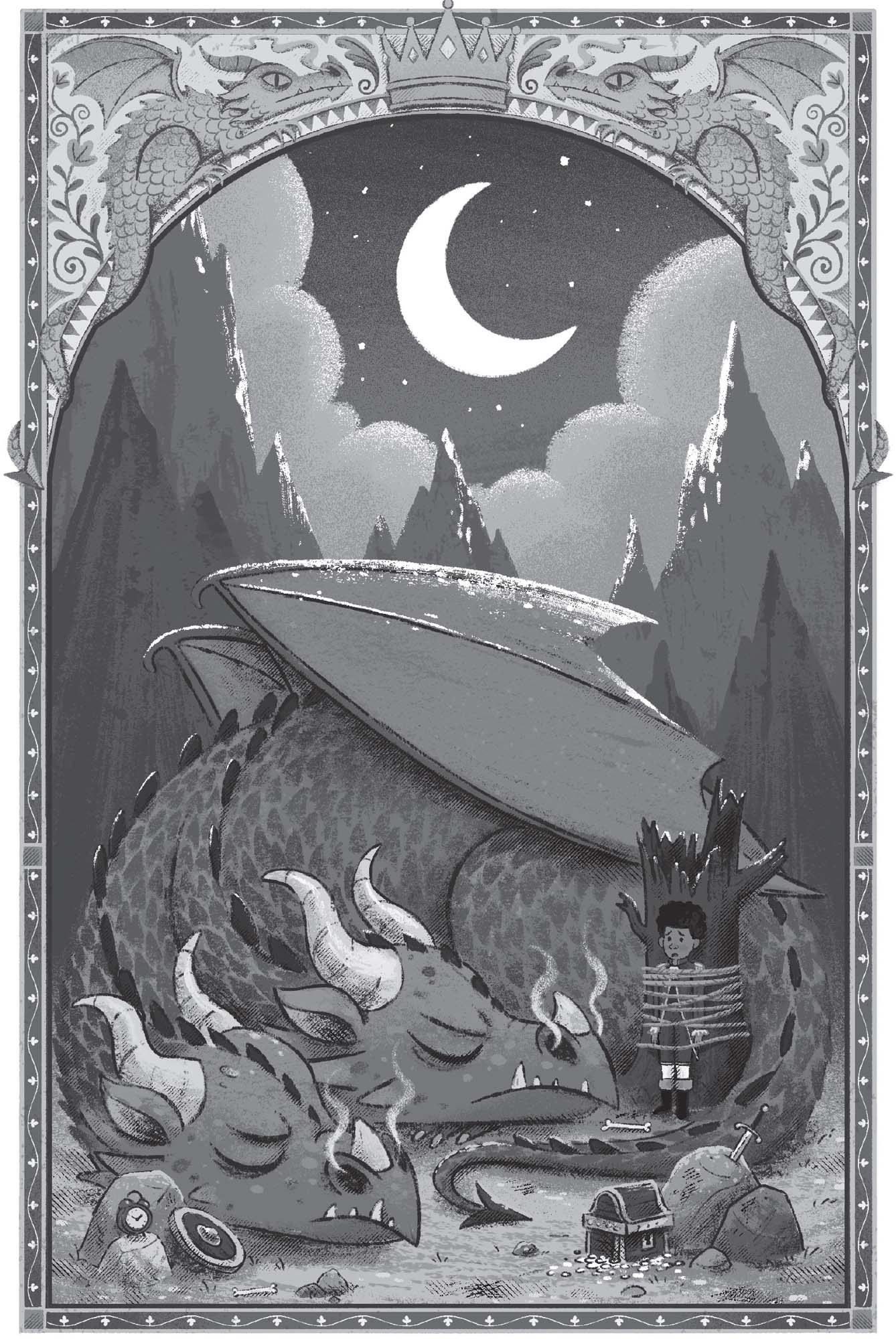Bennett was tied to a tree with fiendishly complicated dragon knots, looking rather white and scared. But as soon as he saw Florizella, he whispered as softly as he could, ‘Florizella! Untie me, quick!’