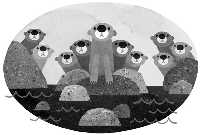 Компания морских выдр резвилась на мелководье, когда один зверёк заметил блестящие предметы. Как по команде, все они замерли. Затем подняли носы и принюхались. Ничего – только запах моря. И тогда они осторожно двинулись по камням, чтобы рассмотреть всё поближе.